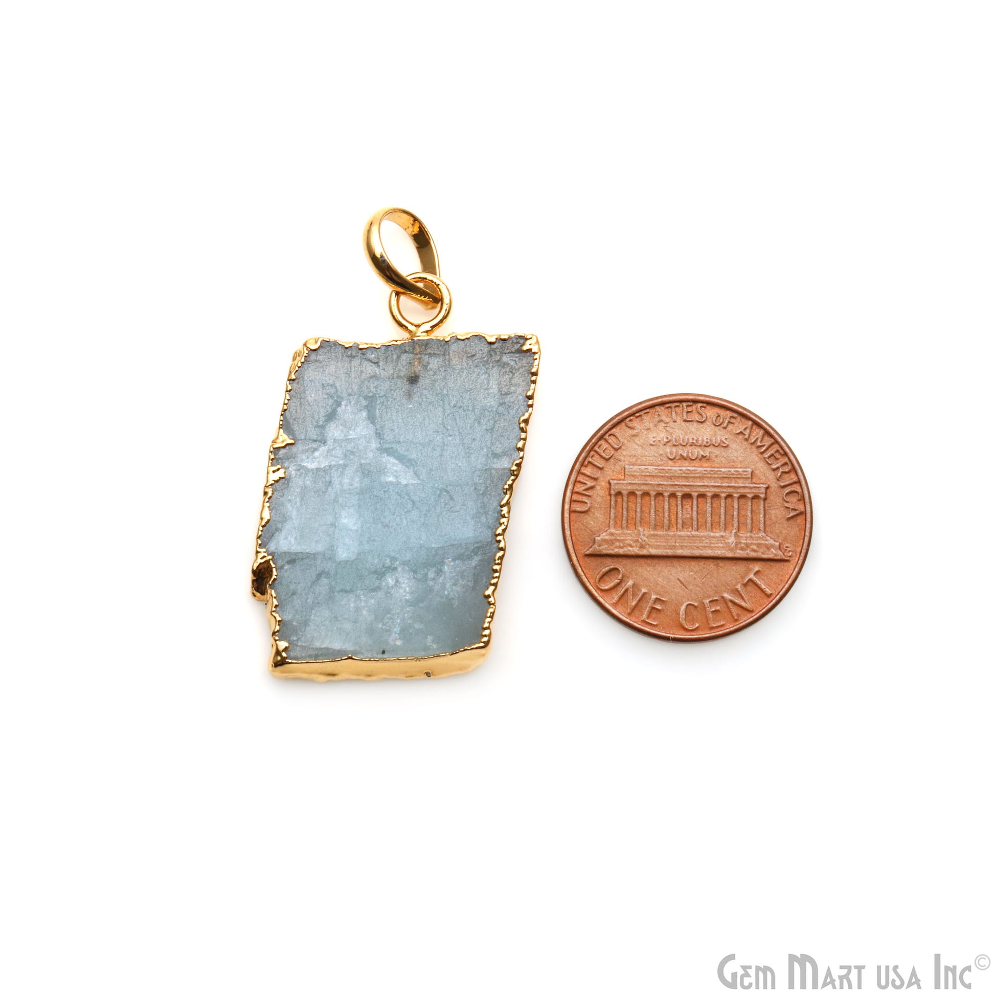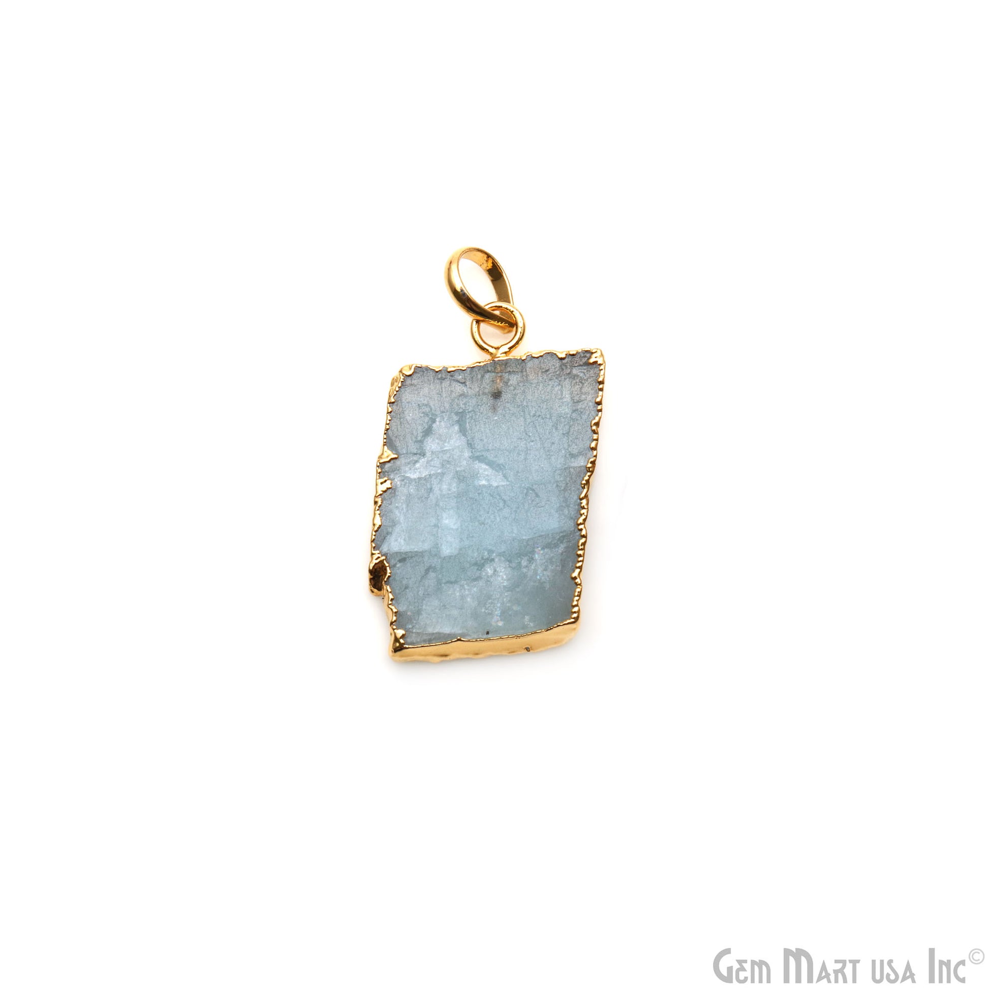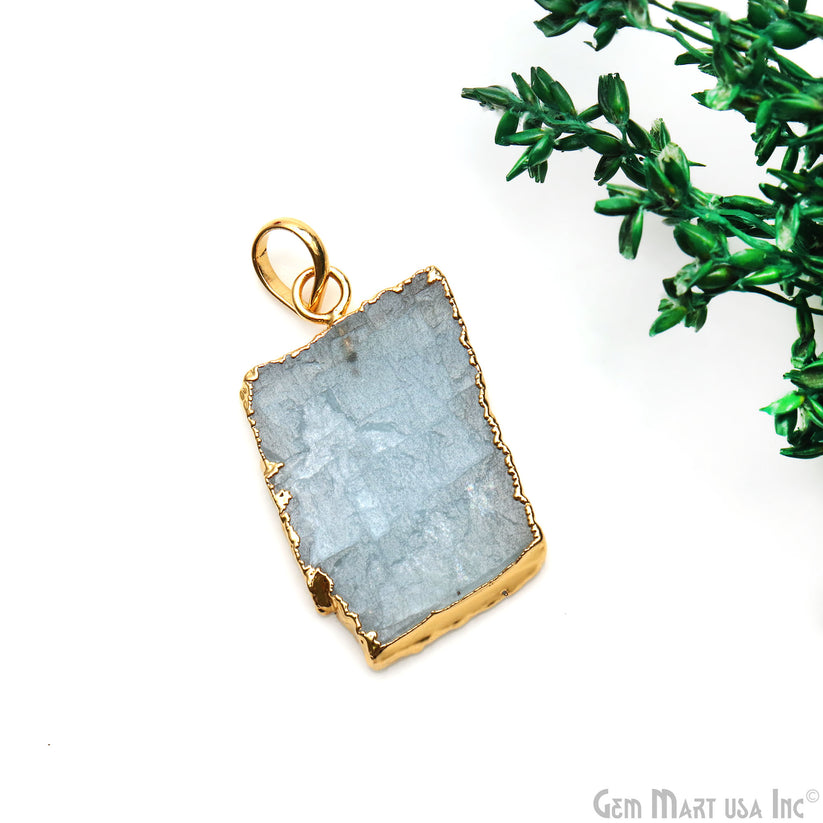 Aquamarine Free Form shape 31x18mm Gold Electroplated Gemstone Single Bail Pendant