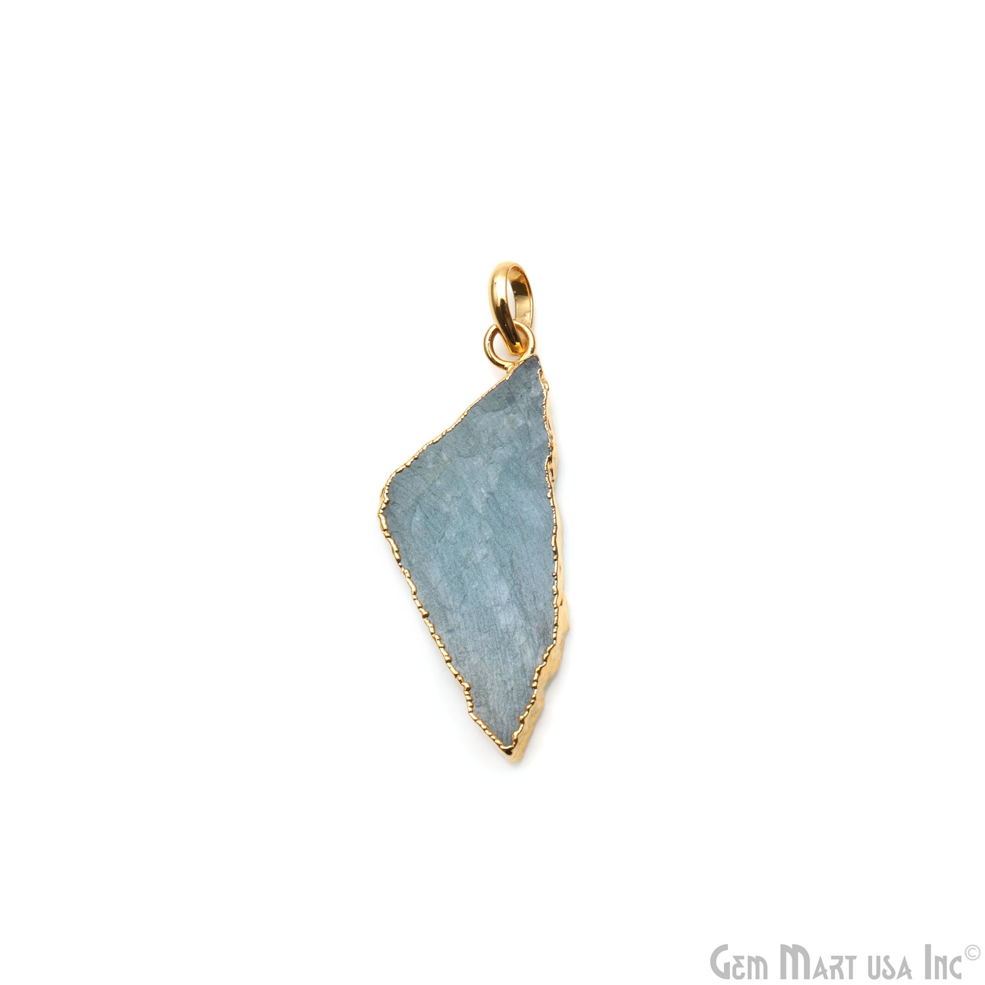 Aquamarine Free Form shape 40x16mm Gold Electroplated Gemstone Single Bail Pendant