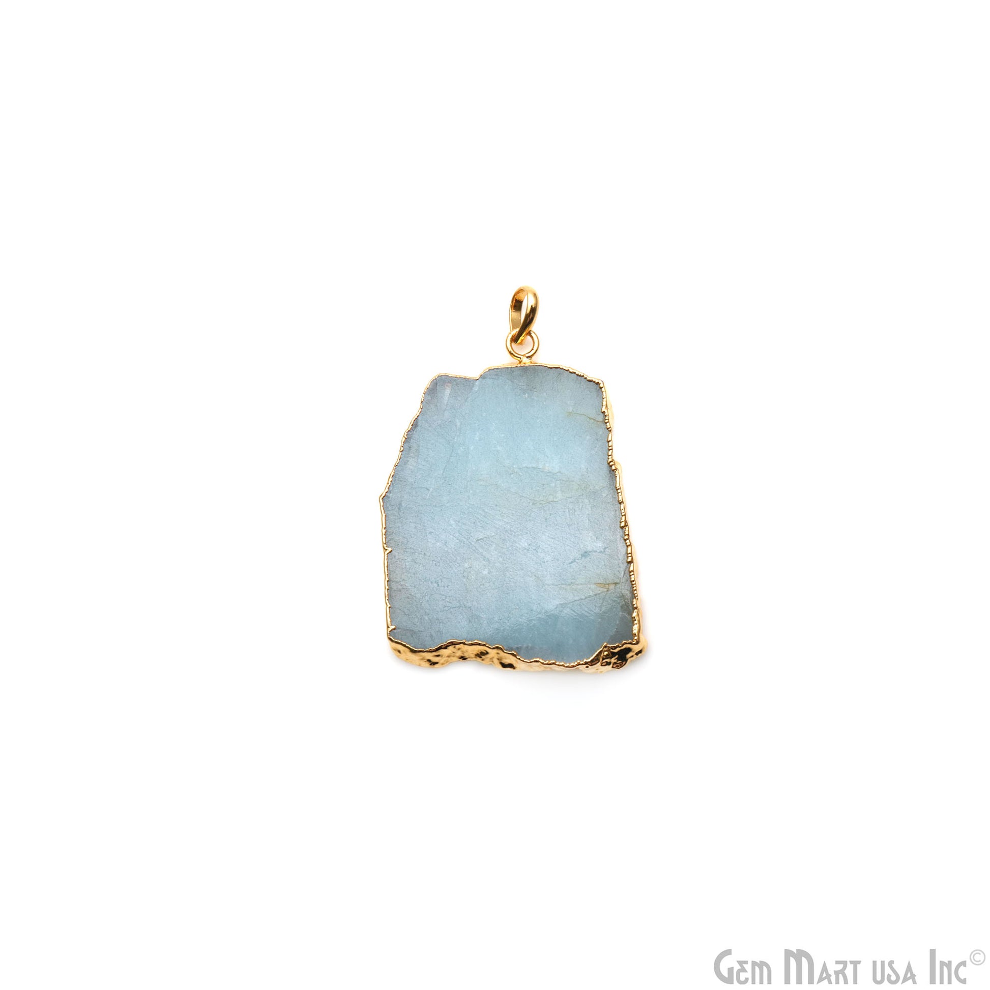 Aquamarine Free Form shape 49x35mm Gold Electroplated Gemstone Single Bail Pendant