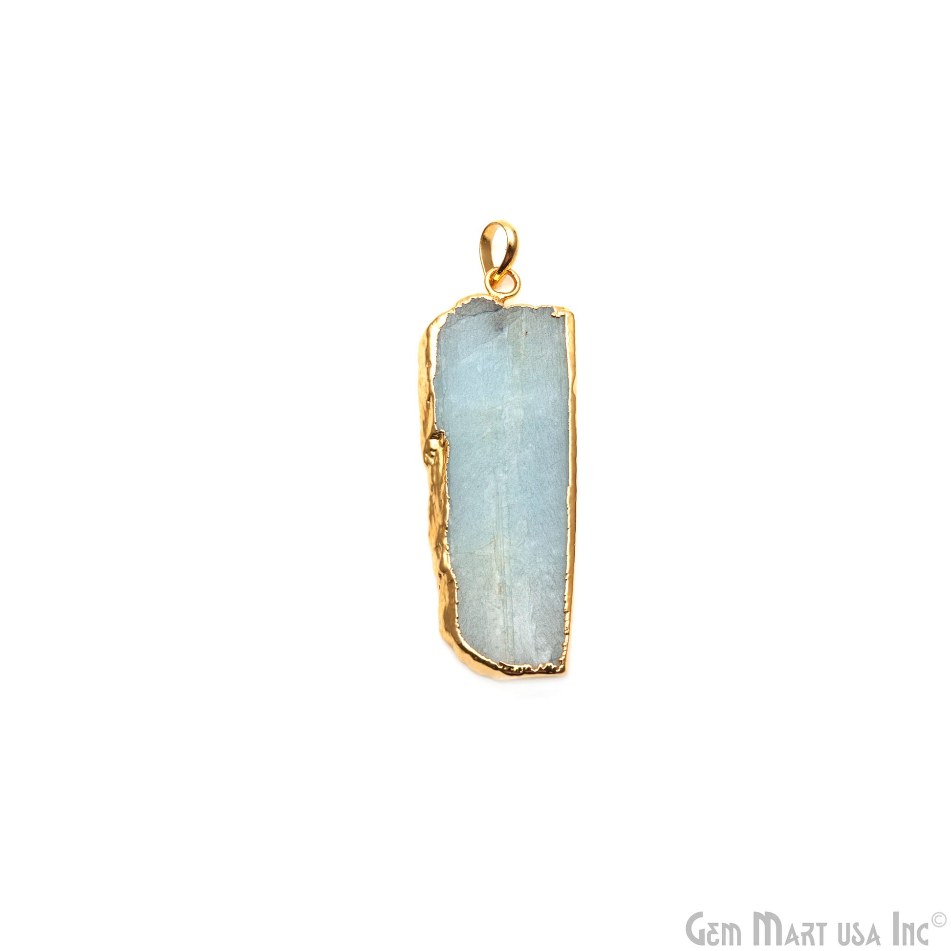 Aquamarine Free Form shape 53x20mm Gold Electroplated Gemstone Single Bail Pendant