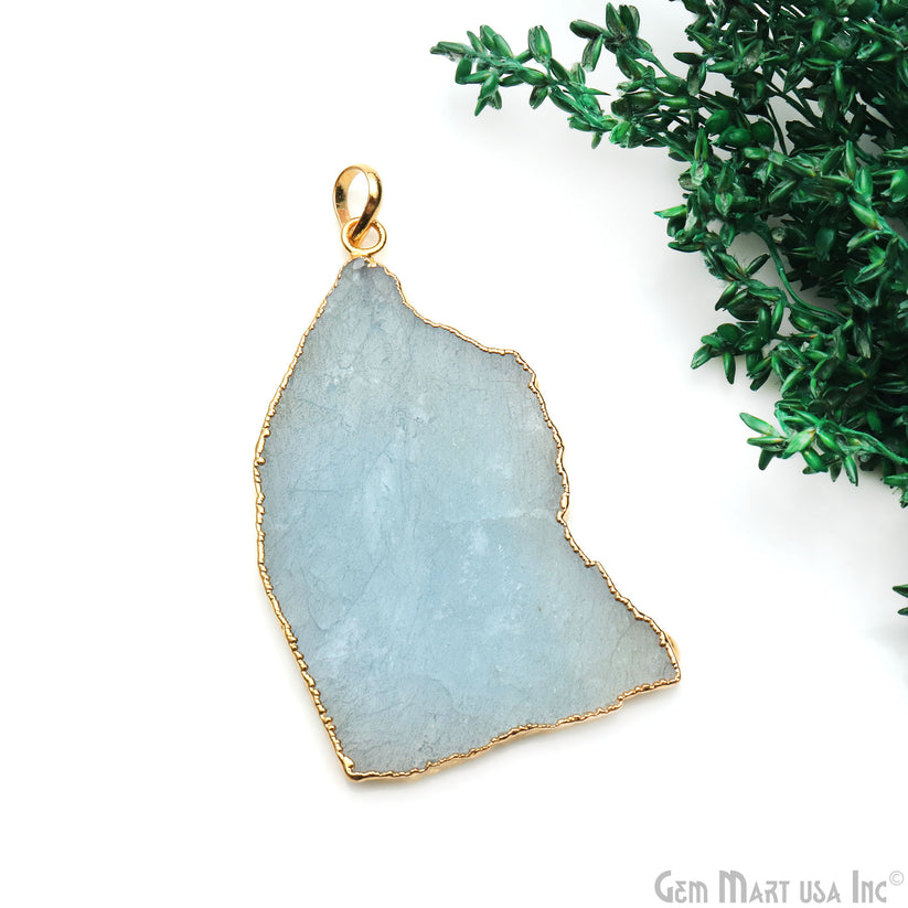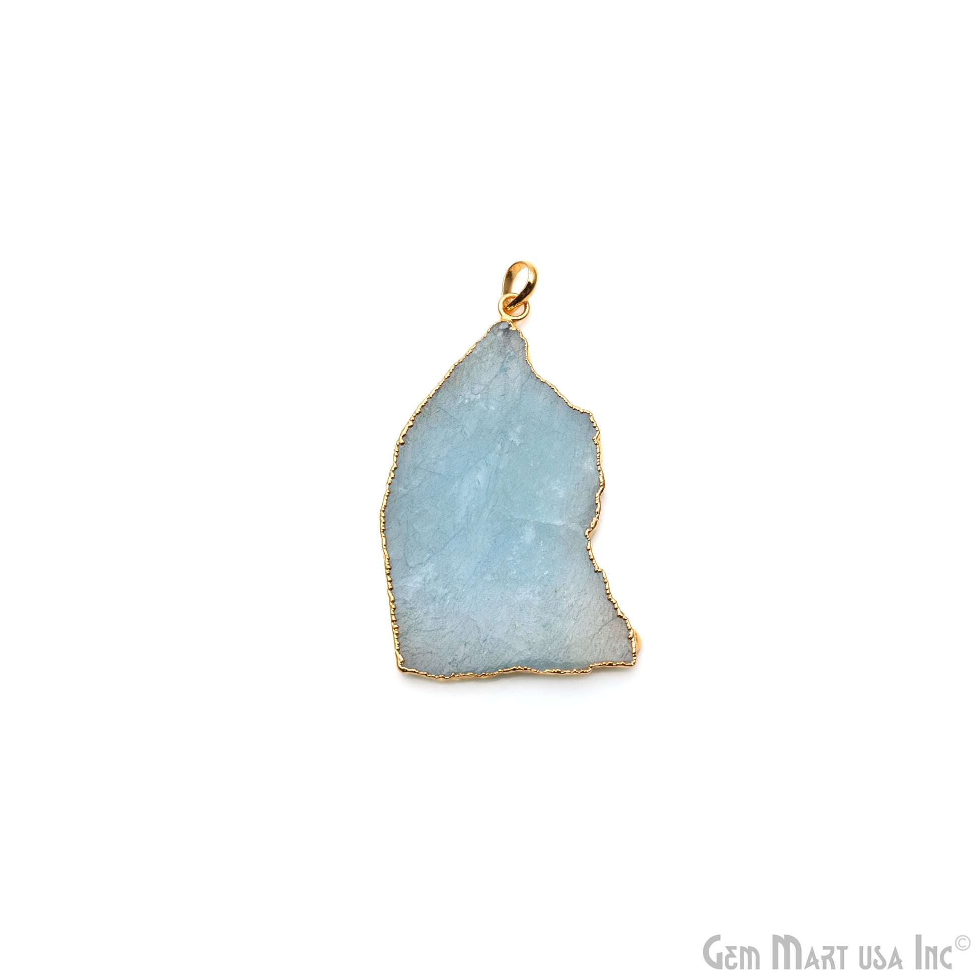 Aquamarine Free Form shape 58x35mm Gold Electroplated Gemstone Single Bail Pendant