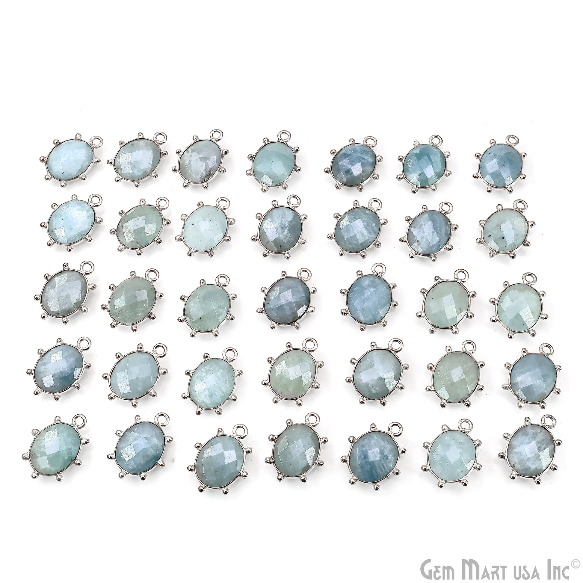 Aquamarine Oval 17x13mm Design Bezel Silver Plated Single Bail Gemstone Connector