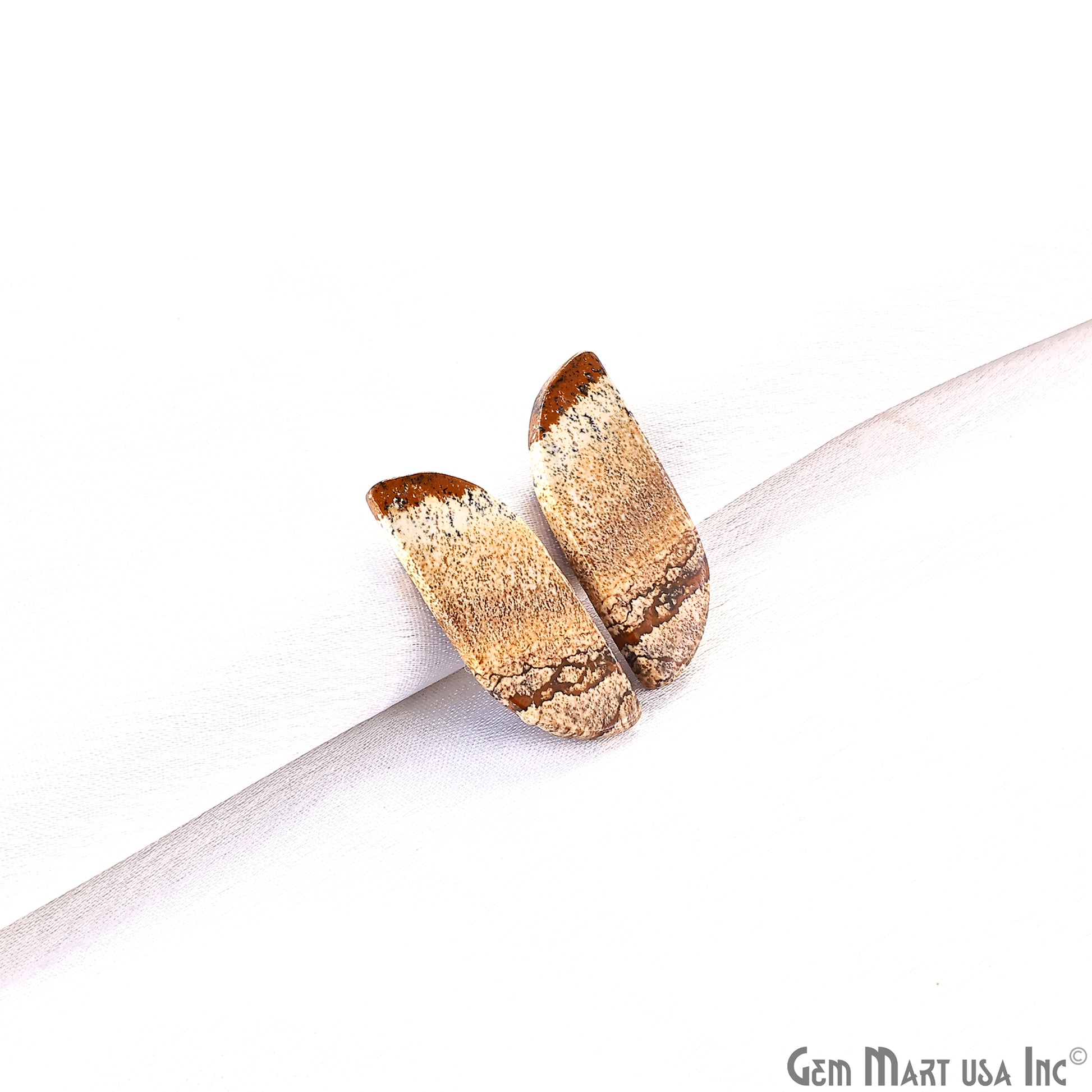 Picture Jasper Free Form Shape 27x13mm Loose Gemstone For Earring Pair