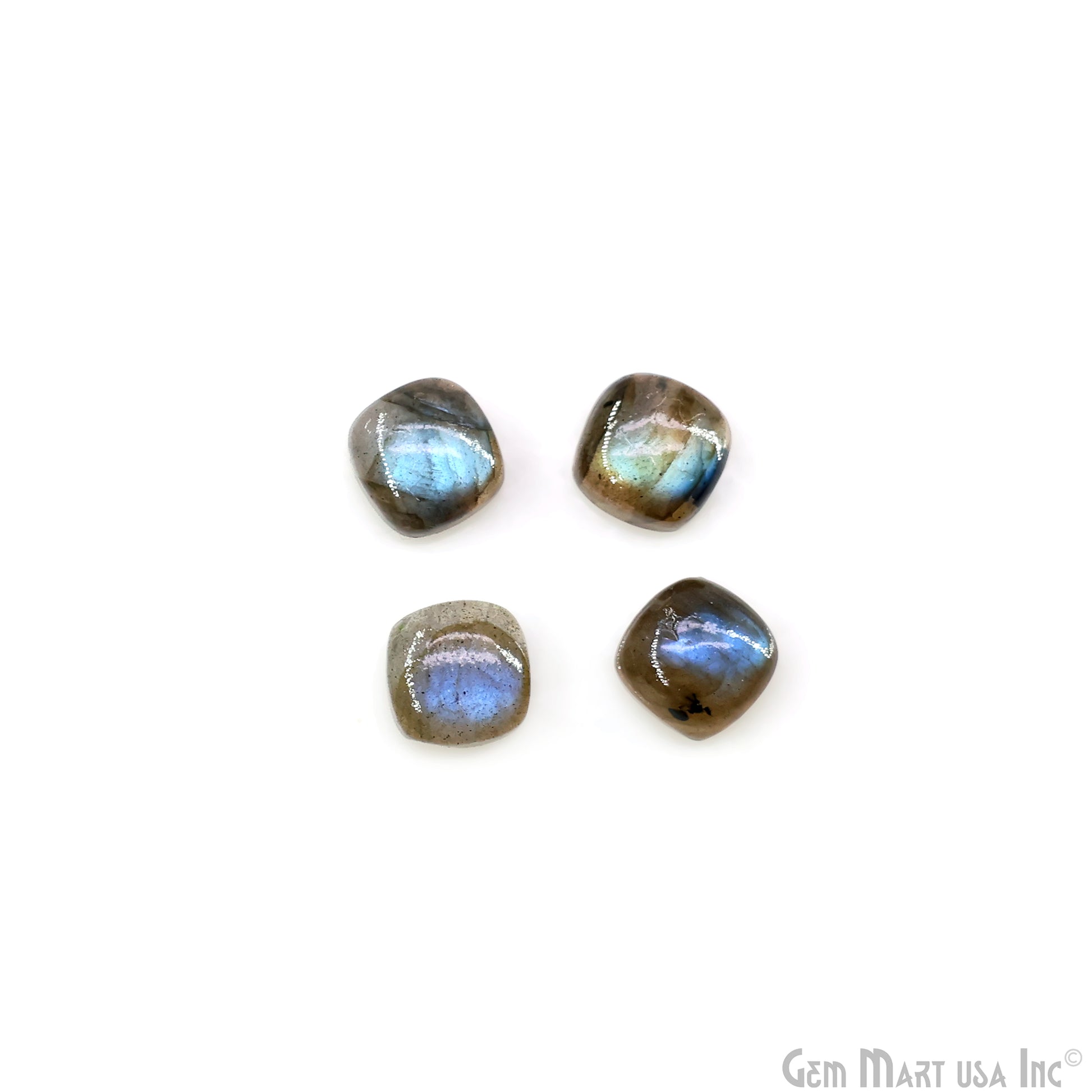 Labradorite Wholesale Gemstones, 100% Natural Semi-Precious Gems, Blue Flash Cabochon Loose Gems, 8mm, Cushion, 4PC Lot