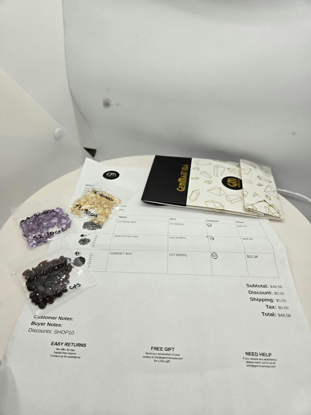 There was a nice mix in size, shape, and gemstone type. I was pleased with the selection. It took quite a while to ship out, but the order was placed in December.